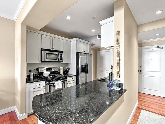 Here is your chance to own a meticulously maintained 1 bedroom, 1 bathroom condo in Stoneham! Come inside to be delighted with the sundrenched space and beautiful updates. The kitchen offers stainless steel appliances, updated countertops and a peninsula jetting into the dining area. The open floor plan allows for sightlines through the home and out the large bay window in the living room. The fireplace is a gorgeous feature and will keep you nice in warm during the cold New England winters. Down the hall find your spacious primary suite offering a huge walk-in closet! The stunning updated bathroom offers a double vanity with upgraded faucets. Check out the office space with built in cabinets and shelving! Additional features include a NEW water heater, in unit laundry, a shared roof top deck and MORE! Easy access to 93 and Route 1, moments to shopping, restaurants and MORE! Don't miss this!