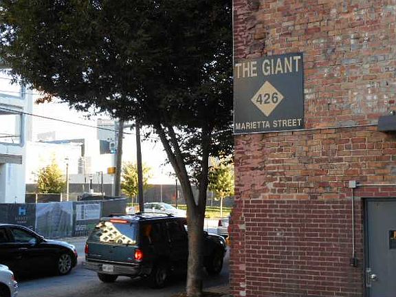 Spectaular view of Midtown and Buckhead from this top floor unit at the GIANT, circa 1910. True loft features concrete floors, brick walls, factory windows. All new cabinetry, granite,brand new stainless appliances in kitchen. Newly tiled bath has all new fixtures. In unit laundry in walk in closet. Freshly painted, move right in. Underground parking with elevator access. Common rooftop deck with gas grills. Secure, professionally managed building, with strong homeowner's association. Walk to everything downtown:Aquarium,Coke Museum,CNN,Dome,Omni, GWCC Centennial Park