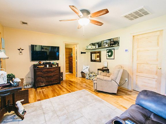 All brick cutie set back from the road and privately nestled on 5.13 acres! Sought after school zones. Kitchen has lots of cupboards for all your storage needs. Room off of screened porch currently being used for a bedroom, but could be used for office, play room, game room, whatever you need. Take in the fantastic view of your fenced lot from the screened porch and just relax! 2 car detached garage with lien to for storage and barn all add to this home's country charm, but still conveniently located.