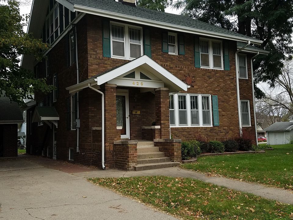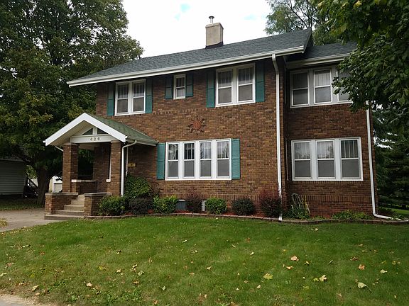 Beautiful brick home with many extras! Entry way area leads to living room with fireplace and built-in cabinets. Hardwood floors in dining room. Main floor laundry area. Arched, rounded doors. Upstairs extra room w/bank of windows could be used for reading area, sunroom, nursery, office or craft room. Attic space could be bedroom, toy area, teen room, etc. Wooden deck, brick patio and extra lot on north side included. Attached garage is extra deep, for motorcycle, mower or snowblower storage. Detached 3-car garage also has extra parking area. Ample storage in lower level.
