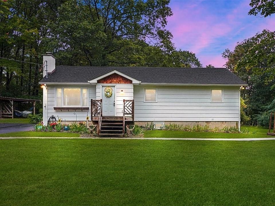 Nestled back off a quiet country road, you'll find this 3-bedroom, 2-bathroom ranch home with seasonal views of the Hudson Valley. This beautiful property is perfect for anyone who values comfort and space. You'll love the open concept design and flow of the kitchen, living, and dining areas. Snuggle into a cozy chair with your favorite book and enjoy the warmth of the wood burning stove on chilly autumn evenings. The walkout basement with a full bathroom offers storage space, laundry area, another woodburning stove, and potential for future living areas. The backyard is truly an oasis, featuring a covered patio with a stunning wood ceiling, side deck, hot tub, and a level backyard with mature shade trees... perfect for entertaining guests or just enjoying the solitude of nature. You'll also appreciate the convenience of the 3-car carport, ample room for parking, storage shed, and garden area (grow your own organic food.) This home is ready for a sustainable future!!! Located adjacent to the driveway is a generator hook-up for climate resilience and a 50-amp electrical plug (hello, future EV charging station!) The expansive, open backyard has perfect southern exposure to install a large solar array to power your property. Be ready for a modern all-electric home with two upgraded 200 amp electrical panels. Over the years, the owners have added numerous custom improvements to make this an exceptional place. Newer roof and windows, updated kitchen, and hardwood floors are key features. Close to hiking destinations, farmer's markets, and only 5 minutes to I-86 for convenient commuting. Additional Information: Amenities:Storage,HeatingFuel:Oil Above Ground,