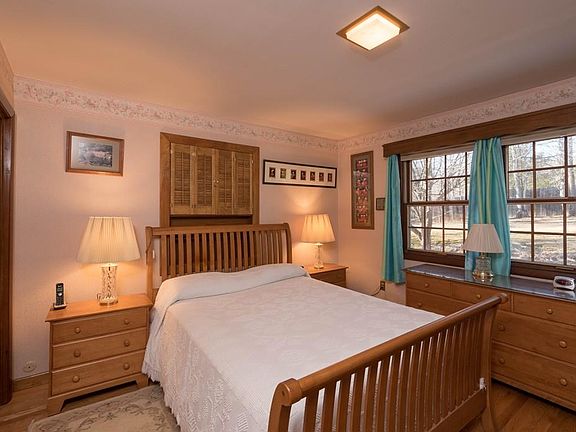 Beautifully maintained ranch style home on pretty 3/4 of an acre lot in lovely Bernardston. The large kitchen with quartz counter opens to an inviting, sunny living room with bay window, striking brick hearth and pellet stove. Hardwood floors, central vac, ample closet space, finished basement, one car garage and carport are just some of the amenities you will find. There are two bedrooms and two full baths plus the potential for a third bedroom or office space. Knotty pine sunroom with hot tub and wood stove overlooks the pretty grounds featuring a screen house, small gazebo and numerous plantings.