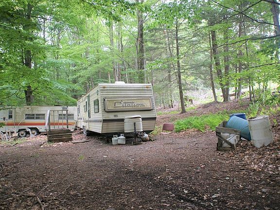 PRICE REDUCED! The perfect getaway! Two lightly wooded lots on 6.5+ acres with a 35-foot camper that easily sleeps six people. Close to State Game Lands and World's End State Park and road frontage on two roads. With a little TLC this can be the perfect hunting camp or low maintenance vacation property. Come see why Fox Township is so popular for getting away from it all.