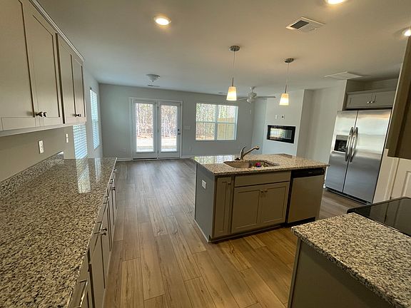 3bedrooms and 2.5 baths. Granite kitchen with island! large master with three closets. two other bedrooms upstairs. Great room with a contemporary gas fireplace. Upstairs laundry with washer and dryer closet. Sunny patio wuth privacy fence and wooded view. close to shopping!