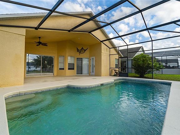 Four-bedroom, three bathroom detached home with a heated screened pool and and conveniently situated for the Disney attractions. This home has a spacious living/dining area. The pool faces west so you will enjoy beautiful sunsets in the evening from the spacious pool deck and lanai, there are no immediate rear neighbors looking into the pool area. The large master bedroom has sliding doors which lead onto the lanai by the pool, the master bathroom has a large bathtub, separate shower, twin sinks and a door will also leads onto the pool area. The second bedroom also benefits from an en suite bathroom, there are further 2 bedrooms and an additional bathroom. Shops, restaurants, supermarkets, golf courses and Posner Park and Champions Gate are all within a short drive of this house. West Stonebridge is a small very popular development which is also close to I.4 and HWY 192.