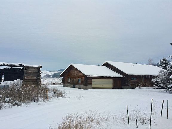 Nicely built log home on 8 acres with two separate parcels just 4 miles from Colville. This log home has great bones however, does need some very much needed TLC. Open concept floor plan, large fireplace that opens up on both sides into the dining room and living room. Deck on the back, outbuildings including a barn and plenty of room for cows or horses.