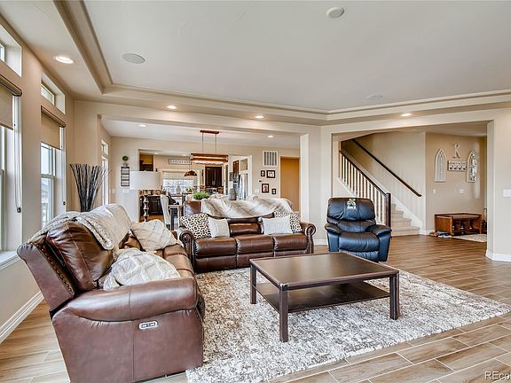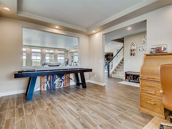Breathtaking 5 Bedroom home in prestigious Erie Highlands! Limitless upgrades throughout! The main level features an open concept with stylish plank tile flooring, pull trowel finish, vinyl shutter blinds and custom surround sound! The gourmet kitchen offers granite, glass-back-splash, double oven, pantry, dine-at island and additional eating space for family gatherings. Adjacent to the kitchen, the impressive living room area, complete with over-sized fireplace. A bonus office/study and 1/2 bath complete the main level. Upstairs you'll find a generous loft area, along with 4 bedrooms, each with over-sized walk-in closets! Convenient upper level laundry! The fully finished basement provides a sprawling Family room, bedroom, 3/4 bath, and a built-in workshop w/12 can lights, 7 recp, & 1 220 recp. Enjoy the comforts of outdoor living! The stunning patio features colored cement, perimeter lighted stone wall, gas fire-pit, matching colored lighted stairs leading from front of home to patio and decorative concrete boarder. In front, the custom stone planter is ready for your personal touch. Superb workmanship throughout! Incredible mountain views from inside and outside of this exquisite home. Erie Highlands is a Family friendly community that offers numerous walking trails, parks, community pool, playground, clubhouse and fitness area! Conveniently located! Close to New Schools!
