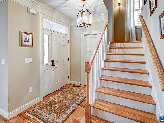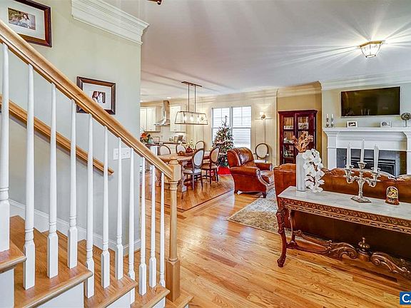 Exuding storybook charm this home will not disappoint! Perfectly located with parkland in front within the sought after Old Trail community of western Albemarle. Warm wood flooring with intricate inlay design, open main floor plan, upgraded lighting, and elegant millwork are a few of the many upgrades you will find throughout this home. Farmhouse style kitchen with white shaker cabinetry, stunning countertops, breakfast bar, stylish backsplash, farm sink and stainless appliances. The owners suite is warm and inviting featuring walk in closet and spa-like attached bath with dual sinks, frameless glass shower and soaking tub. Large rec room on lower level. Private covered back porch and patio too. Enjoy all the area has to offer!