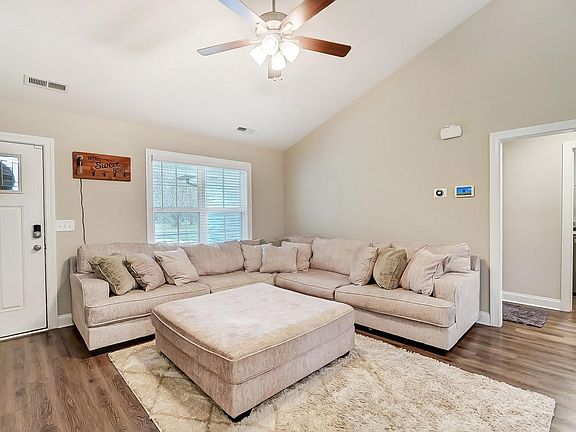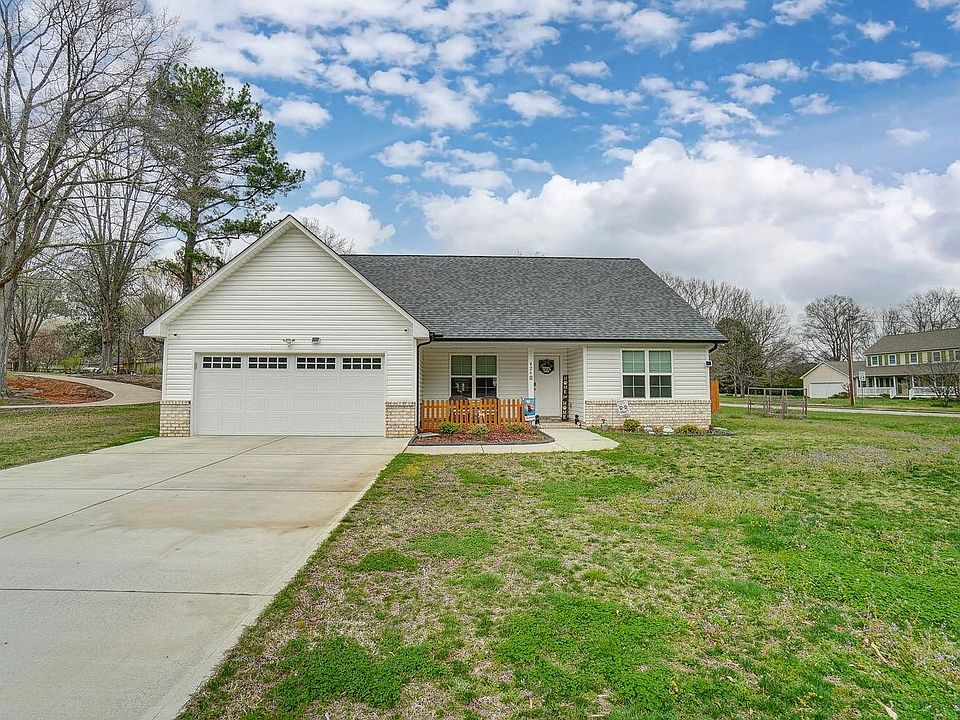 Built in 2021 and beautifully maintained and upgraded with XL primary shower with dual shower heads, 6 foot wooden privacy fence, storage shed, leaf filters, additional attic storage space and landscaping. With 3 bedrooms and 2 full baths this split floorplan offers space to gather or relax in private. Granite counters, shaker cabinets and SS appliances welcome the chef in the family! Kitchen island and pantry offer extra storage. Master bath upgraded with XL tile shower with dual shower heads, as well as linen storage with floating shelves and a barn door! Out back you will find a concrete patio surrounded by a 6 foot wooden privacy fence! All this on a half acre lot complete with a storage shed! Security system to be hooked up by buyer