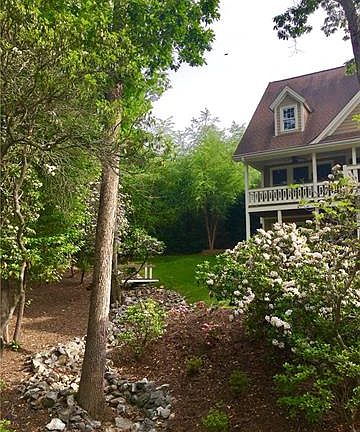 Newly painted interior, move in ready, Custom-built, Donald Gardner, 3BR, 3.5 BA, home in Arden's sought-after Ashley Woods! Welcome to end of the cul-de-sac, 0.74 acre, wooded-privacy! Relax & enjoy the gentle breeze from the tree-house-like Arts & Crafts covered, front porch overlooking a park-like yard, creek & bridge. 5- Star Chef's DREAM KITCHEN w/an island (seats four), a 6 burner gas stove, granite countertops & more! Bright main-level living boasts an open floor plan w/vaulted ceilings, a great room, kitchen w/breakfast nook, dining room, master suite, laundry & half bath. 2 more BR's, a BA & a BONUS ROOM upstairs! The secluded, terraced/landscaped backyard is fenced-in (woof) has PERFECT SOUTHERN EXPOSURE, a spacious back deck, hot tub & outdoor fireplace! This 3,690 sq ft home has a large den & bar in the daylight, walk-out basement! Finish ADDITIONAL 985 SQ FT (currently a gym/workshop)! There is ample parking w/a 2 car carport & double car garage. Sweet Community Park.