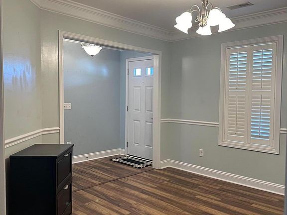 4 bedroom 2 bath home. 3 bedrooms downstairs and 1 bedroom upstairs. Ceiling fans in bedrooms and great room. Great room features high ceilings with fireplace. Separate dining room with chair rail and crown molding. Primary bedroom has vaulted ceiling, ensuite and walk-in closet. 4th bedroom can be used as a bonus room.. Large enclosed backyard with patio.Washer/dryer and refrig convey. New Water heater install January 2024. New microwave 7/2024. HOA Dues are $105 a quarter. Window Shutters throughout. Kitchen and bathrooms have tile. 15 mins from the beach. Quick move in available. Covered front porch. Fresh paint for all bedrooms including upstairs bedroom/bonus room.
