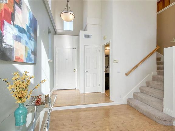 East facing, light and bright corner unit in front of swimming pool & spa in Vestrella at Gale Ranch. Brand new - washer-dryer, microwave, recessed lights, Honeycomb shades and fans in bedrooms. Newer carpet in the bedrooms and stairs. Electric Car charger in the garage. Soothing sounds of the city's water fountains in the paved backyard. Separate dining area. Large kitchen w/breakfast bar & pantry. Close to shopping. Blackhawk Plaza and parks. Convenient location near award winning schools, shopping, transportation, and the new City Center. Excellent location! No Smoking Renter is responsible for PG&E, Water and Sewer Flexible on lease duration - Minimum 6 months