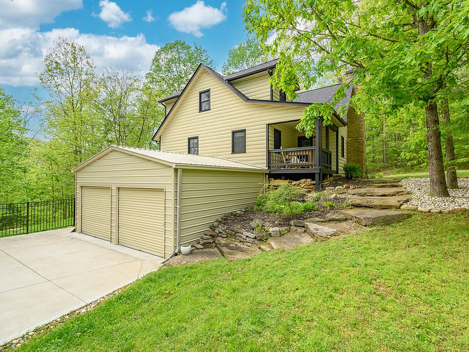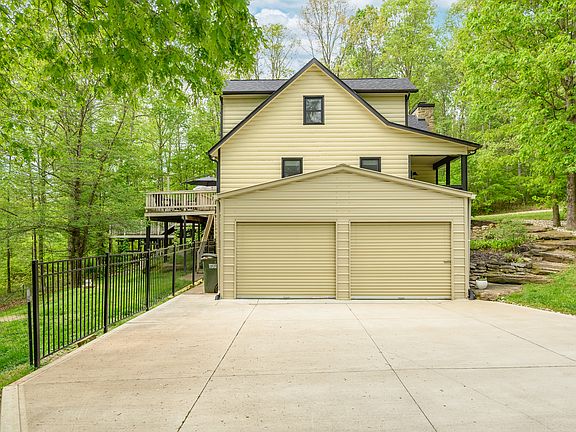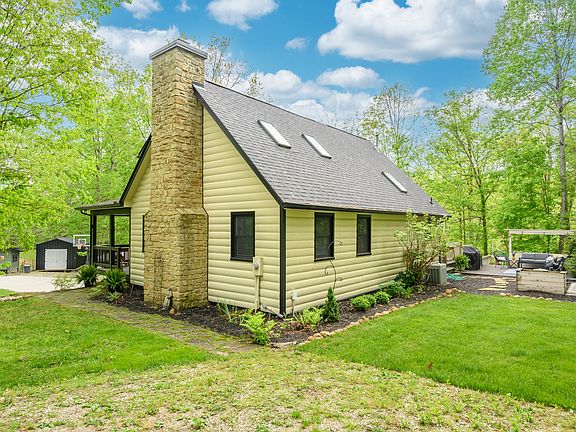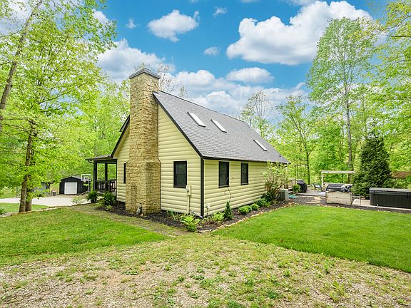 Don't miss this amazing opportunity to own a private retreat in Brown County Indiana! This D-log style cabin sits on 7.5 wooded acres. The hiking trails, multiple fire pits, large deck system and hot tub will allow the next owner to fully enjoy this property. The home includes 3 beds/2.5 baths with the primary suite on the main, two level family room with cathedral ceilings and loaded with updates: roof (2020), windows (2022), concrete driveway (2019), hot tub (2021), water softener (2023), kitchen island, updated flooring, fixtures, and High Speed Internet. There are two large bedrooms and a full bathroom upstairs, and the finished basement walks out to the two car garage. Now is your chance to own a beautiful piece of Brown County!