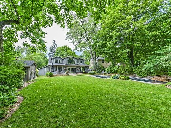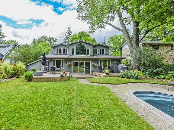 There's a sanctuary waiting for you on the Thames river. Old-world charm including original hardwood & stained-glass blends with modern updates. The main floor welcomes you with a cozy living room including gas fireplace & a formal dining room, perfect for entertaining. The original home seamlessly transitions to a two-storey open concept modern living area which includes huge windows, a gourmet entertainers' kitchen, and informal living & dining spaces. The fenced yard with picturesque gardens is quiet, deep & private, with a large deck and stunning heated saltwater concrete pool. The almost one-acre yard extends to the Thames River, offering a natural greenspace. The basement has a guest room, exquisite full bath & laundry room. The 2nd floor offers three bedrooms including a large master with a skylit ensuite. The upstairs landing area provides a panoramic view of the property. Within walking distance to downtown London, this unique home is the best blend of "country in the city".