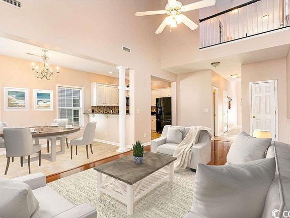 Ride your golf cart to the beach from this gorgeous 3 bed 3.5 bath home located in the desirable Ocean Pines community! Framed by lush landscaping, features, both inside and out, abound in this home and include hardwood floors in the living room and master bedroom, tile floors in the foyer, kitchen, dining area and baths, ceiling fans throughout, a profusion of windows which infuse the entire home with wonderful natural light, and a fantastic backyard that includes a detached storage building with electric. Wonderful open floor plan includes a spacious living room with soaring ceilings and accented with wainscoting panels, nice sized dining area framed by architectural columns and a fantastic kitchen with abundant cabinet space , tile backsplash, solid surface counters, and a breakfast bar. The first floor master suite includes a huge walk-in closet, vaulted ceilings, and bath with double sink vanity and tub/shower. The laundry room and half bath are also located on the first floor. Upstairs, there are two more bedrooms, each with its own private bath with vanity and shower. No detail has been spared in the spectacular private fenced backyard which will be your true oasis! Multiple patio areas provide plenty of space for grilling and al fresco dining and the custom stone bench with pergola is the perfect spot for you and your guests to truly relax while enjoying the firepit and listening to the serene pond. In addition, there is a one car garage with epoxy floor and extended driveway for additional parking. Ocean Pines is a quiet, established community with no HOA located in the heart of Surfside Beach and just minutes from shopping, restaurants, fishing, golf , Brookgreen Gardens, the Marshwalk , and Huntington Beach State Park plus minutes from all the entertainment and attractions the Grand Strand has to offer . Less than a mile from the ocean! Whether you are searching for a primary home or the perfect beach retreat, this is a must see! Make an appointment to view this lovely home today!