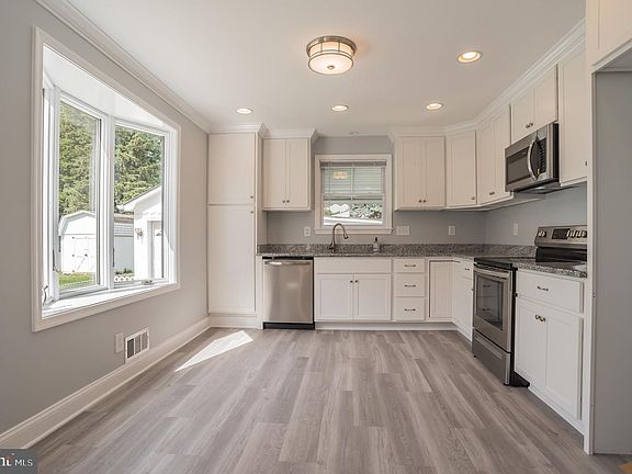 Solid Brick porch front home in Essex! Bright & Naturally lit with multiple Bay windows, original HW flooring, brand new grey/white Kitchen with Granite & SS Appliances. Bedrooms located on main level and upstairs, Finished Basement, new electrical, plumbing & insulation. Detached Garage, long Driveway & Bonus CRAB Shack to enjoy your Summer evenings! Come see this great home, before it's too late!!