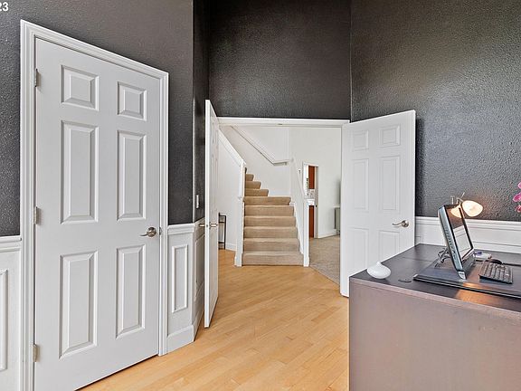 This is your dream home! Glamorous primary owner's suite feels like a luxury hotel. From the heated tile floor to warm your feet in the morning into your bathroom oasis to die for! Huge walk-in shower complete with see thru fireplace for ambiance to help you unwind in your relaxing soaking tub. Open the window to hear the trickle of the patio water feature below. 4 beds (3 up and an office down with a closet). 2.5 bathrooms. Covered patio for outdoor get togethers and large fenced back yard with Bubbler fountain and tool shed. 3 car garage with long driveway for parking and overhead storage. Flex room could be home school area or an additional small bedroom if barn door was installed. Soaring vaulted Living/Dining room PLUS a gourmet kitchen/family room area with eating bar. Stainless steel appliances, views of Mt Hood, great Cul-de-sac sought after dog walking neighborhood location. 5 minutes to downtown Troutdale restaurants and shopping. 1 year home warranty included. And NO HOA! See it today!
