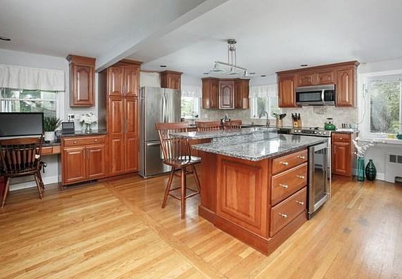 OPEN HOUSE SATURDAY (6/1) AND SUNDAY (6/2) 10am-12pm !!! Spacious and bright ranch featuring a large open concept kitchen and living area, nice dining room and 3 good size bedrooms. The renovated kitchen has granite counter tops, stainless steel appliances and a wine fridge. Oversized room off of the kitchen features vaulted ceilings and skylights, bathroom with shower/ steam sauna as well as its own private entrance and has the possibilities of office for home business, family room, or a larger master bedroom. Large partially finished basement has ample storage space and lots of potential. Cozy backyard with Koi fish stone man made pond. Fantastic location in Woburn on the Stoneham line close to shopping, restaurants, golf course, conservation area, public transportation and highway access.