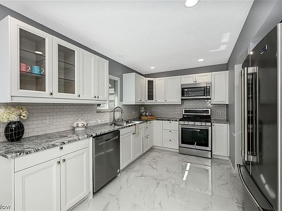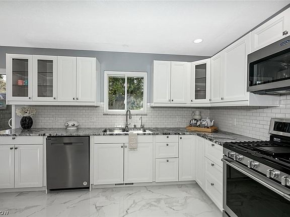 STUNNING REMODEL! Welcome to 426 Sandhurst Dr. This 4 bedroom split level home, located right off North Revere Rd., has plenty to brag about. The list of updates is impressive, and all completed in 2022~ ALL new, energy efficient WeatherSeal windows, roof, and doors! Gorgeous new kitchen with Klearvue cabinetry, new hardware, GRANITE countertops, tile backsplash, tile floors and modern lighting. Kitchen sink has a top of the line water filtration system. New stainless steel Maytag appliances, including gas range, microwave w/ convection oven option; doubling your roasting / baking potential, refrigerator and dishwasher, are a great finishing touch. BRAND NEW BATHROOMS with marble countertops and tile flooring. Marble slabs in bath, shower, and window ledges. Spacious walkout lower level with fresh paint, new carpet, and fireplace. New fence completely encloses the backyard- perfect for the little people in the house or your furry friends. BRAND NEW DRIVEWAY!!! Chimney has been inspected and serviced, and air ducts in the home are completely cleaned. Electric brought up to code with new wiring, LED lighting, motion sensor closet lighting and smoke detectors. Sand Run Metropark walking trail is JUST STEPS from the front doorway! Located just minutes from shopping, restaurants and fitness facilities. 33 miles to Cleveland Hopkins International Airport and 22 miles to Canton Akron Airport. ASK for UPDATES LIST! This is a MUST SEE HOME!!!