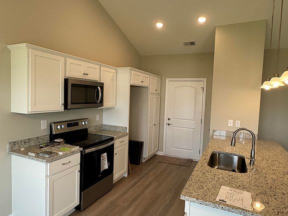 MOVE IN READY...The Haley plan offers a comfortable and convenient living space with three bedrooms, 2 full bathrooms and a two car garage. The interior of this home has 9ft or vaulted ceilings, granite tops in the kitchen and bathrooms, two kitchen pantries, cabinets with crown, soft close drawers and doors, ceiling fans, LED flushed lighting, pendant lighting, stainless steel appliances, luxury vinyl plank flooring throughout and much more. The exterior has a stone accent front, rear covered back porch with a ceiling fan, an irrigation system, completely sodded yard with plant beds, screens for the windows and the sliding door, a garage door with windows, two remotes and pull down stairs. The location of Windsor Farms in Conway SC, offers easy access to both the historic downtown area and the Grand Strand beaches.