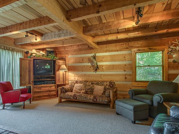 One of a kind rustic log cabin w/ lake view sits on 3 lots for privacy. This unique cabin has antique interior doors three levels of living space, a sunroom, gameroom, screened in porch and lots of deck space. Just minutes from Center Hill Lake boat ramp.