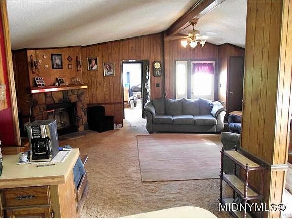 Single wide with tip out addition on 1.9 acres. 3 bedrooms 2 full bath, 1600 sqft. Oversize garage, family room with pellet stove, spacious living room with fireplace. Above ground pool, minutes from village of Ilion.