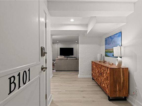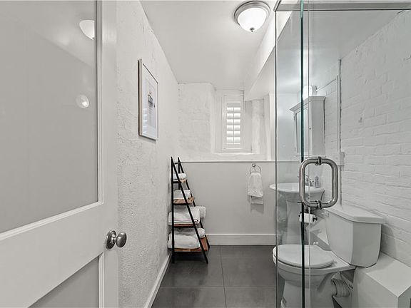Two updated bathroomsEnsuite bedroomStainless appliancesSleek backsplashGarden level unitElegant wood shutters