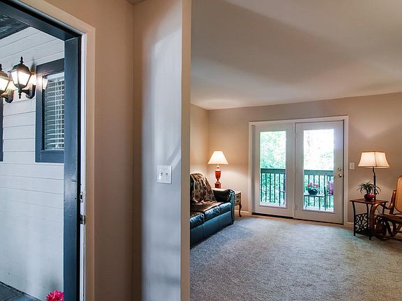 Enjoy new paint & carpet thruout*New French Door, window + designer master closet 2015*Granite, cabinetry, tile floor, stove refrigerator newer updates*Private deck w/tree lined view*No steps*1 bed 1 bath end unit*One of the best community locations!