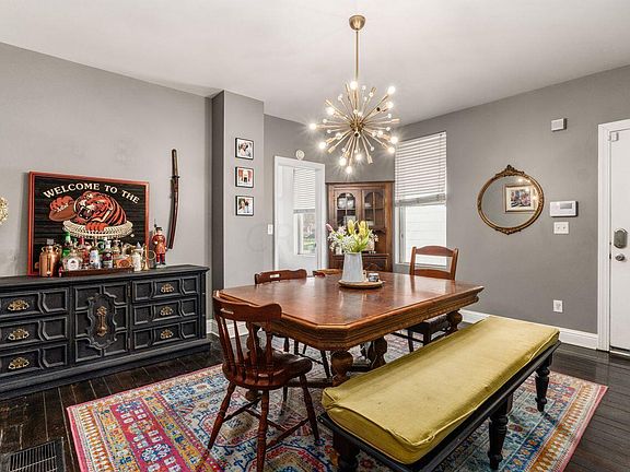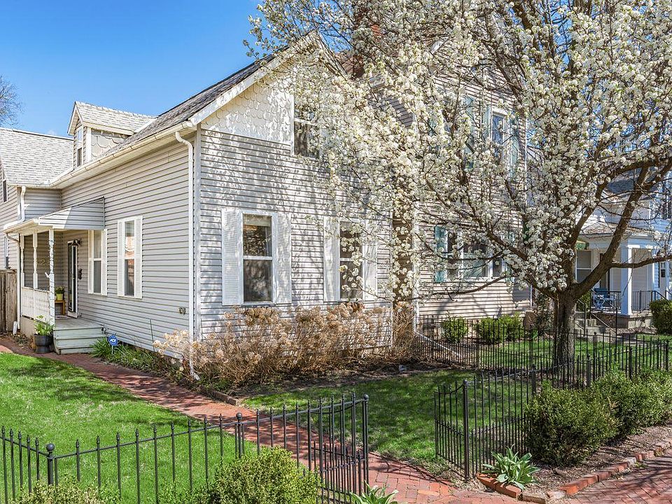 Do not miss this beautiful Cape Cod home with charm galore. Host your parties in the large lush, fully fenced yard with bonus garage door facing yard, ready to use for buffet or bar! Relax in the 2 darling bedrooms! Both full baths have upscale renovations!! Living Room has been First floor Owner's bedroom & can be again.. Wonderful family gathering area on 2nd floor. Updated kitchen with granite countertops, stone floors and all
