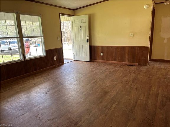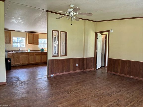 FENCED ACREAGE...1.06 +/- ACRES Enjoy the country location, near the end of the road offering a bit of privacy. Tremendous backyard with chain link fencing may meet your needs for special pets or just backyard outdoor enjoyment. The spacious deck is a plus for this brick underpinned mobile home. A primary suite with triangular tub (designed with jets, which may or may not be working...no repairs if not operable). The covered front porch, 16'5" X 8" permits relaxing in the shade. City Water & Septic...still waiting on the correct septic report. Storage building does not convey. Property being Sold in 'AS IS' Condition.