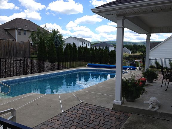 - Beautiful Colonial Home on a large corner lot in the Hills of Archbald - great location - Ten years young - Dual heating and AC units with humidifier system - First Floor has 9 foot ceilings with crown molding - Large eat-in kitchen with additional sitting area/maple cabinets/corian counter - Large Master Suite with His and Her walk-in closets - Large Master Bathroom with garden tub, double, sinks, & separate shower/commode room - 2nd and 3rd bedrooms good size - both 12 x 14 - Kohler fixtures throughout home - 16 x 36 Built In Pool - maintenance free powder coat aluminum fence - Covered back patio with additional brick paver patio - Attached 2 car garage with extra tall 5 panel garage doors - Long driveway plenty of off street parking - First floor laundry/mud room