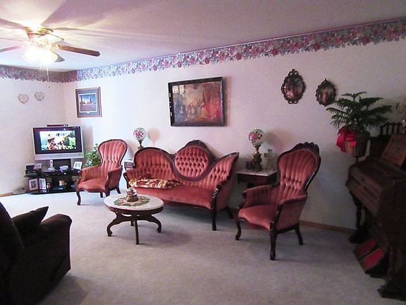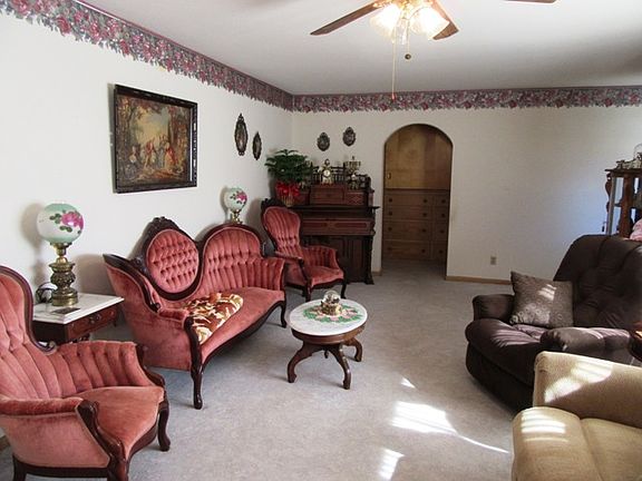 Nice maintenance free stone and vinyl ranch style home! This homes has a spacious living room with a built in china cabinet separating the living room from the dining area. A kitchen with newer stainless steel refrigerator and stove as well as a breakfast nook. This home also has 3 bedrooms and a full bath. The exterior features an oversized 1 car attached garage. The shaded backyard features a covered patio, and 2 storage sheds. Call today to see this property! 620-532-1887