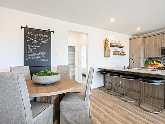 This two-story townhome features a first-floor bedroom with a private full-sized bathroom that can serve as a versatile flex room or a suite for overnight guests. Upstairs is an open layout among the dining room, kitchen and Great Room that flows to the open patio for outdoor living. The owner's suite is also on the top floor.