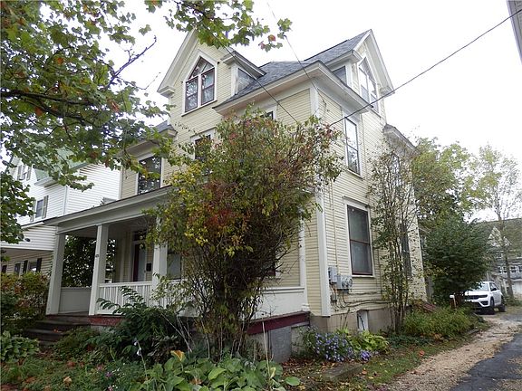 Nice two unit building. Recently painted and new decking and shingles on roof with in a year. Second floor apartment: new drywall, attic opened to create a vaulted ceiling over living room, 2 bedrooms and full bath, steps to a lofted area bonus room or office and 3rd bedroom and 1/2 bath, . First floor has a livingroom, kitchen, bedroom and full bath All utilities seperate except water/sewer. Easement for alley can not be closed one half interest of alley. Off street parking for two and a detached 2 car garage with electric and workspace (1980). Laundry hook ups for both units. Storm windows. Also new insulation. Garage is metered to the second floor. Private backyard with fence.