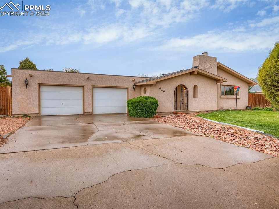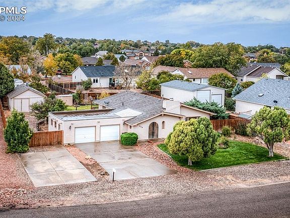 This charming 3 bedroom, 2 bath ranch home spans 1,578 sqft and is nestled in a highly desirable Pueblo West neighborhood. With a little TLC, this home holds amazing potential for those eager to customize and boost its value. Inside, you'll find a cozy living space with a character filled fireplace, perfect for warm, inviting evenings. The kitchen opens up to a serene little patio, ideal for gardening, bird-watching, or simply enjoying a peaceful moment outdoors. Plus, the covered breezeway offers a private retreat, a dreamy space for morning coffee, reading, or a cozy garden escape in any weather. All three bedrooms are generously sized, with the primary bedroom featuring a private 3/4 bath, while the main bathroom is spacious and includes a dual vanity, perfect for busy mornings. The property sits on a spacious .36-acre lot with a well maintained yard, RV parking, a 2-car attached garage, and an oversized 1-car detached garage, ideal for extra storage or a workshop. Enjoy the convenience of being within walking distance to the Desert Hawk Golf Course and just a short drive to the Pueblo Reservoir. This prime location also offers easy access to schools, parks, shopping, and dining. This home offers charm, space, and endless possibilities in a welcoming neighborhood!