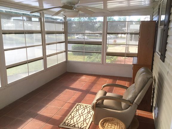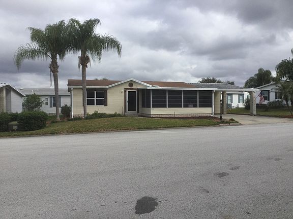 ALL YOU NEED IS RIGHT IN FRONT OF YOU....LITERALLY This is a 2 bedroom 2 bath furnished Florida gem of a home. ItS situated right across from the clubhouse in Windmill Village. Swimming, exercising, bingo, crafts, shuffleboard & much more all steps from this home. The home has a double car driveway, carport, front screened lanai and more. You can enter the home from the driveway into the lanai that has ceramic tile flooring, windows and plenty of room to enjoy your morning coffee. The kitchen has patio door entry into an eat in kitchen, laundry closet, plenty of storage cabinets, newer appliances, laminate flooring and a good amount of prep areas. The kitchen overlooks the living room, that is furnished with a large screened tv, laminate flooring & a fresh paint color. While entertaining youlol be able to still enjoy your guests while working in the kitchen as both areas flow together nicely. The bedrooms are a split floor plan divided by a center hall 3 pc bath. The guest bedroom comes with furniture, laminate flooring, window treatments & ceiling fan. The master bedroom is on the other side of the hall with a walk in closet, laminate floors, furniture, nice natural light & access to the 4 pc master bath. The master bath has ceramic floors as does the hall bath. The master bath has a closet as well. The is the perfect home for you to come and start your Florida living!