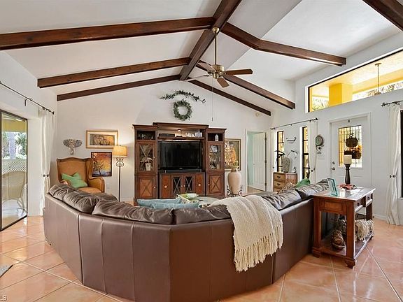 This charming home in the up and coming neighborhood of Collier Woods in North Naples is super clean, move in ready and brings Country living close to the city. It features vaulted ceilings with wood beams in the great room as well as really nice features and updates. There is all tile and laminate floors throughout (no carpet.) Split bedroom floor plan, separate utility room and LOTS of storage. The large attached screened lanai is almost 600 sq. ft. and there is also a detached air-conditioned building just under 400 sq. ft. with running water ideal for a home office, shop, home gym, art studio, extra storage plus another shed for lawn equipment, etc. The driveway is fully paved to behind the house and features water and electric hook ups for an RV, boat, etc. The roof was replaced in 2013 and the hot water heater in 2012. 2.5 acre Southern exposure lot with room for a pool and the backyard is partially fenced too. Prime North Naples location close to everything. Call today for more info or to arrange your private showing!
