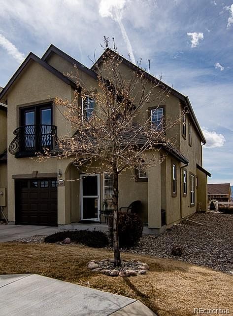 End unit with views of Pikes Peak and a good amount of natural light. Walkout to patio from the living room, and walkout to small patios from both bedrooms. Main level has an office with no closet but it could be used as a guest bedroom or playroom. The laundry area has cabinets and countertops for extra storage. There is an upper small loft area. The main level has the kitchen, living room, and dining area all open for entertaining. Club house, excercise room, and pool are part of the common area amenities.