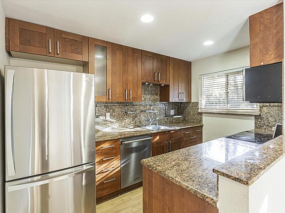 Wonderful single-level 3-bedroom home surrounded by mature trees with serene pool views! The oversized living room is bright & inviting, featuring neutral carpeting, recessed lights, & a sliding door to the rear deck. The adjacent dining room includes laminate flooring & a large window. The kitchen shines with cherry-finished wood cabinets, granite counters, & SS appliances, incl range, dishwasher, microwave, & refrigerator. The spacious primary bedroom features a tree-studded pool view, a built-out walk-in closet, and added privacy. All bedrooms include overhead lighting, with one secondary bedroom also offering a walk-in closet. The primary bath boasts a tiled stall shower, wood vanity, and granite counters, while the hall bath offers a shower-over-tub with similar finishes. Additional highlights: central heating/AC, dual-paned windows, laminate entry flooring, and an assigned carport (#20). Ideal location among the trees steps to the pool & close to freeway access, Concord BART (2 miles), Newhall Community Park; walk to Safeway & Starbucks. Vista Verde HOA include water, garbage, pool, clubhouse, greenbelts, and community laundry. Neighborhood schools: El Monte Elementary, El Dorado Middle, and Concord High (buyer to verify). A fantastic location with so much to offer!