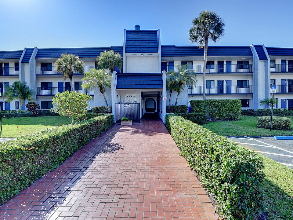 Back on the market due to buyer's financing issues. Motivated seller! Great location in a gated community only 7 miles from the beach. Close to the Wellington area with lots of shopping & restaurants, many public golf courses, community tennis & pickleball centers, with the option to join the country club. This unit has a great layout with the 3rd bedroom used as a den but can easily be closed in. New AC & duct work in 2022 & new accordion shutters in 2021. Ground floor unit with a storage unit next door & pool & cabana across the street. There is construction on the adjoining property but per HOA there will only be an expanded lake to look at from the patio. Come see this beautiful community & customize this unit to enjoy for years to come!