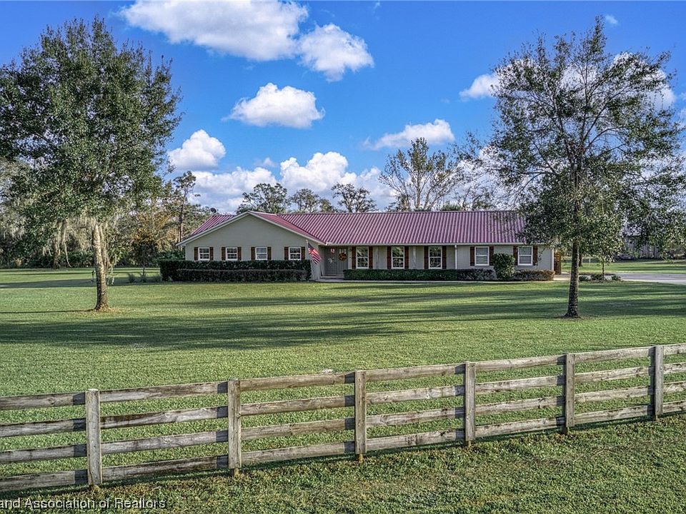 MULTIPLE OFFER SITUATION - PLEASE PRESENT YOUR CUSTOMER'S HIGHEST AND BEST OFFER ON JAN. 14, 2024 BY 5PM. Wow!! Situated on 10 acres of pristine Florida Zoned Agricultural land in the peaceful Avon Acres neighborhood of Avon Park, FL - this stunning homestead that has recently undergone a remarkable transformation is now ready for new owners to enjoy! Everything on this sprawling Ranch style home has been masterfully updated and well maintained throughout. 3 spacious bedrooms with large closet spaces, designated home Office room, 2.5 bathrooms, In-Ground Heated Pool, 40'x60' pole barn with concrete slab, fully fenced-in property perimeter, plus so much more! The immaculate landscaping and exceptional curb appeal will make you so happy to arrive home in a beautiful setting every day! Upon entering through the front door entryway, the formal Living Room and office is located to the immediate right side. Continuing down the foyer reveals the family room and HUGE kitchen fully equipped with updated appliances, plenty of cabinet/counter space, Travertine tiled back splash, Farmhouse style lighting and breakfast bar providing for extra barstool seating. Adjacent formal dining room showcases a lovely bay window incorporating a stunning view of the surrounding land. Super convenient indoor laundry room with 1/2 bath is located next to the 2-car garage! The family room is complete with a brick-lined gas fireplace and French door access to the backyard pool paradise. The massive 16x13 primary bedroom contains a generous walk-in closet as well as a custom en-suite bathroom that you will absolutely fall in love with - complete with generous amounts of storage space, fully tiled custom shower with dual shower heads PLUS unique vanity lighting and double sink vanity! The pool/patio area delivers joy on those hot summer days - complete with a 15'x32' heated in-ground split-level concrete pool, 41'x56' Brick Paver deck, and a gas fire pit. The covered screened-in porch features an automatic roll screen door and a cedar wood ceiling! This home feels brand new since a complete renovation was completed in the summer of 2017. Updates include a new layout, durable Hardy Board siding, interior drywall, new windows, a 5 Ton A/C unit with new ductwork, home generator, on-demand tankless water heater, Metal Roof, and 4" spray foam in the attic. The 5 1/4 inch wood trimwork adds a touch of elegance throughout the home. The 40x60 Pole barn with concrete slab is ideal for storing boats, RVs, and other recreational items. The property boasts a 2 HP well with a sub-drive for the irrigation pump, ensuring energy efficiency by running at 1/4 speed and using only what is needed. Whether you dream of privacy, keeping horses, or storing recreational vehicles - the possibilities are endless! The residents in this neighborhood enjoy not having to pay any Homeowner's Association or Special District Fees! Most of the furniture in the home will stay except for a few noted pieces.