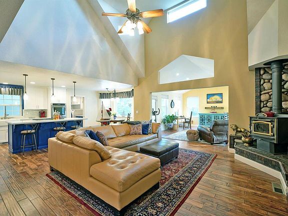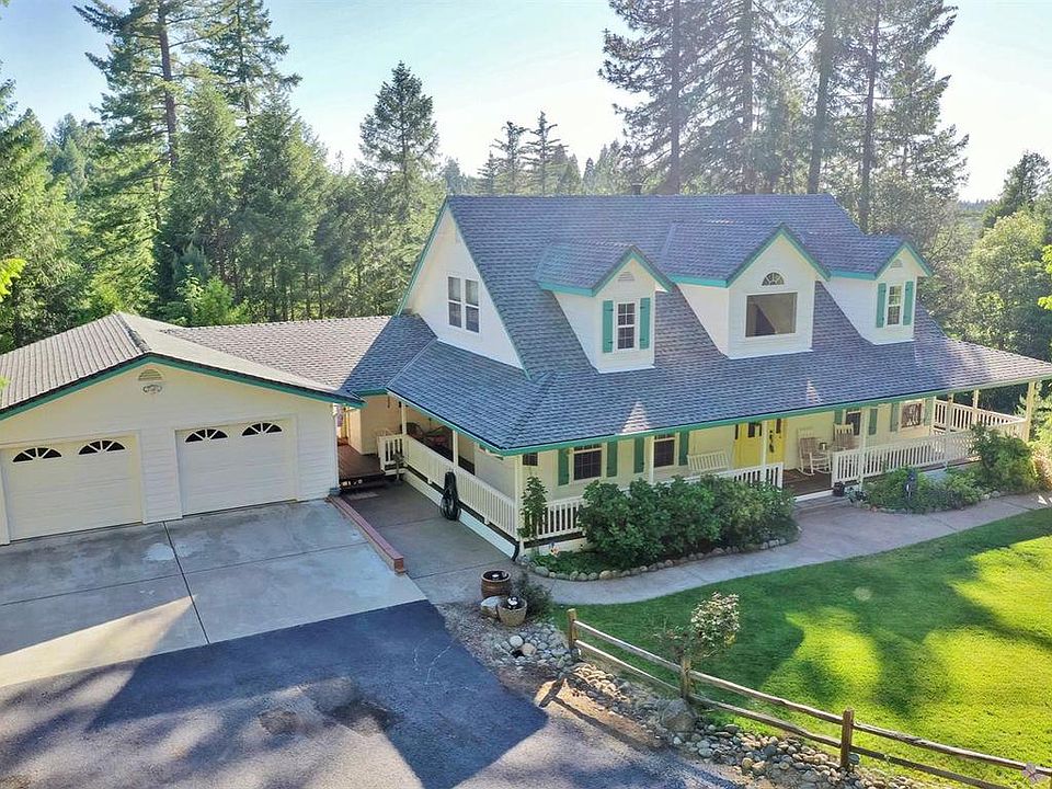PRIVATE COUNTRY SETTING ~ Magical home sits on 10 Acres with Sweeping Circular Drive & Year Around Creek on West end of property! Updated & move in ready with Open Floor plan, Vaulted ceilings, Acacia Wood flooring, Light & Bright Kitchen has White Cabinetry, Quartz counter tops, Farmhouse sink, Stainless appliances, Center Island w/5 burner Gas Cook Top, Pendant & Recessed lighting. Master Suite on entry level & Master Bath offers heated floors, double vanity w/Vessel Sinks, Free Standing Soaking Tub & large Walkin closet. Huge separate shop approx 32X48 with double & single garage doors plus workshop area, ample RV parking has access to water & power. New 16,000 Watt Generator & Propane Tanks owned by seller (575 gal & 150 gal), 50 Yr Comp roof, and last Well report 24 GPM. Escape to your own private retreat and enjoy the peace and quiet! No HOA or MELLO-ROOS.