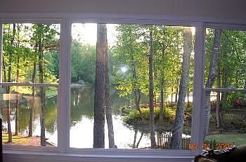 Beautiful lake shore and backyard renovation offering breathtaking lake views from every room across back of home! Newly sodded backyard! Elegant 2-story foyer opens to formal living room with French doors & built-in cabinets. Formal dining room has hardwood floor, chair rail & judges paneling. Gourmet kitchen has lots of cabinets, under cabinet lighting, double oven, big island w/gas cooktop & breakfast bar, big pantry plus 2nd pantry. Soaring 2-story family room w/wall of windows overlooking lake plus double-sided fireplace opening to breakfast area. Romantic master bedroom on upper level affords beautiful lake views from bed & sitting area w/fireplace. Large master bath has jacuzzi tub, oversized shower w/dual shower heads, double vanity & large walk-in closet. Guest bedroom with full bath on main level. Three secondary bedrooms on upper level all w/walk-in closets; one has private bath, two share Jack n' Jill bath. Hardwood floors in foyer, formal dining room & kitchen. Finished daylight basement features bedroom w/bookshelves and full bath, recreation room w/wet bar, huge workshop plus two additional finished rooms.