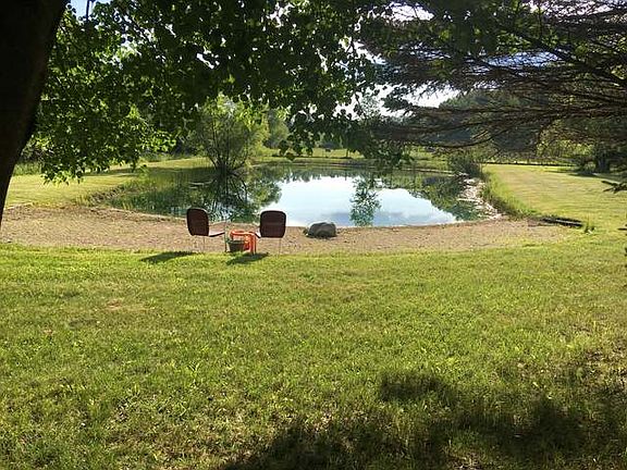 3.7 ACRES Surrounded by wildlife and mature trees, this tranquil property is PRIVATE and SECLUDED. Up North Country Living yet minutes from Town. Relax and enjoy the Sandy beach Pond with depths up to 12 feet deep, float around on a raft, swim and feed the Fish stocked in the treated Pond. This Ranch style home has 3Bd with Master Suite, all on main floor, has a Full Semi-Furnished Basement with Pool Table. 24x40 Pole Barn plus 2 Car Attached garage give plenty of room for storage. Gazebo in the back yard with views of the Pond make a nice area to gather and watch nature explore the property. If you look closely, you will see many Deer tracks by the waters edge. May come Furnished with Good Offer. Half hour away from Midland Shopping and ONLY 2.5 Hours away from Detroit.