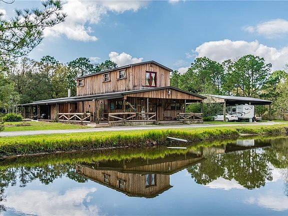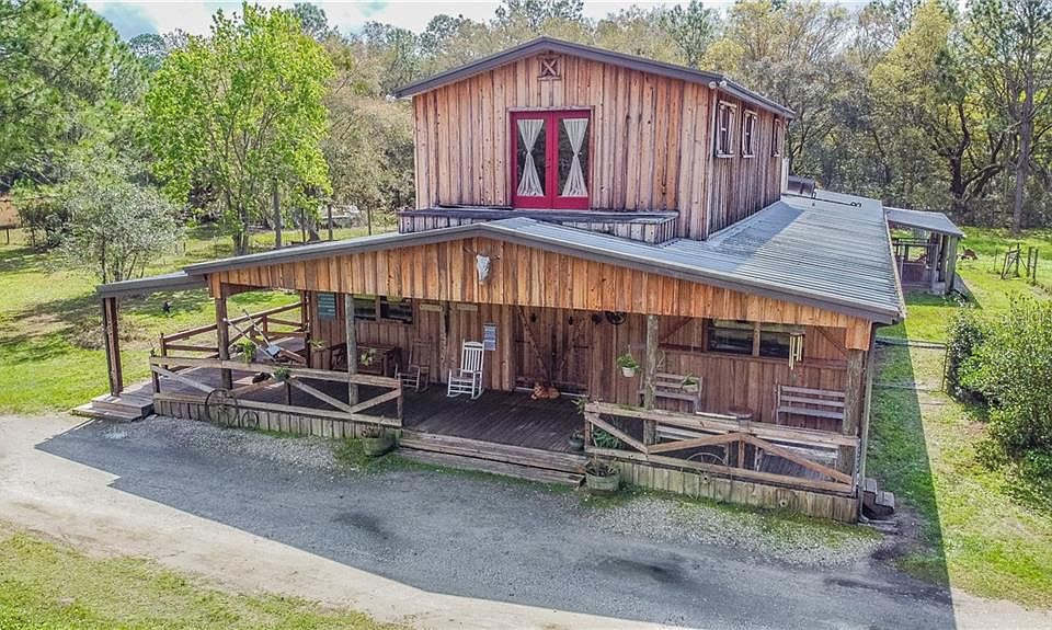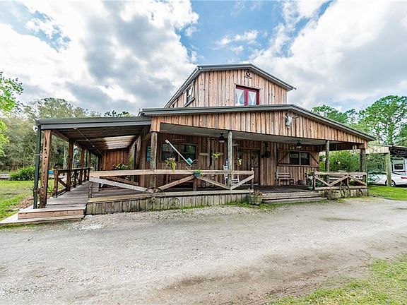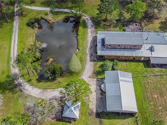 BACK ON THE MARKET AT A GREAT NEW PRICE - 20k PRICE ADJUSTMENT! That's 35K LESS THAN THE ORIGINAL ASKING PRICE!! Seller is also now offering 4k towards flooring for the large room with cement floors with a strong offer! ***Be sure to check out our virtual tour*** Beautiful 3760 square foot country home nestled on 9.1 acres of farm and woods. 3 HUGE bedrooms and 2 roomy, updated bathrooms. The peaceful wooded driveway leads you to this massive, unique home. The sprawling front porch overlooks a serene pond stocked with tilapia, catfish, bass, and bream. This home was built in 2000 by a retired lineman out of pine, cypress, and retired light poles! Cypress siding was cleaned and sealed only 2 years ago. The kitchen cabinets are all hand-made and solid wood. 3 AC units - upstairs unit brand new! Two 40 gallon water heaters, one solar and one electric. Double paned windows help keep the electric bill low! Built-in sliding storm shutters and metal roof with wind mitigation help lower the insurance bill. Well pump recently replaced and septic recently serviced. High ceilings, HUGE bonus room, and a BASEMENT! There is covered RV parking available plus a workshop with AC. A second dwelling with 2 bedrooms also on the property currently rented at $600/month. Farm amenities include fencing, a very large chicken coop, and shelters. Very private and peaceful with wildlife abound such as wild turkeys, spoonbills, hooded mergansers, and resident hawks. Home is termite protected. Also zoned for CENTRAL FLORIDA AEROSPACE ACADEMY!