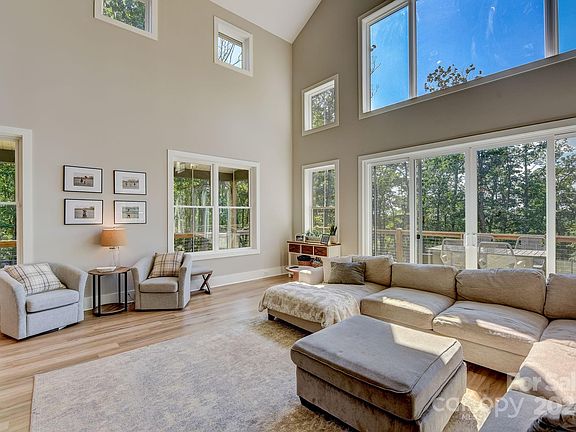 This is your North Carolina dream home situated on 11.86 private wooded acres. This 4 bedroom 3.5 bath home wows you from the second you pass thru the gated entry to the property. Sweeping views of the Catawba valley await you from the decks, two story great room, and raised 360 degree observation level. At over 1200 ft of elevation you feel tucked away in a luxury mountain estate yet are 5 minutes from Lake Norman. In the home features a gourmet kitchen, with hidden pantry, separated from the great room by a see thru soaring two story hearth with natural stone. The great room is flooded by natural light and flows seamlessly outside. The master suite is also on the main level with a fantastic walk in shower, attached office, and large pass thru closet. The second floor features a massive bonus room, 3 spacious bedrooms, and loft area. The most unique feature of the house is the observation level above the loft, surrounded by windows with a 360 degree view of the surrounding area.