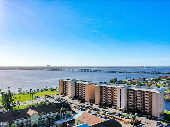 Wow! Amazing views of river and intersecting canals...best kept secret in Cape Coral! This wonderful 5th floor unit is being offered Turnkey, just bring your clothes and enjoy! River Towers is a 55+ community. The lanai is southward facing providing beautiful sunsets. Far reaching views down the Caloosahatchee, Cape Coral bridge and intersecting 200 ft canals. The unit offers two Master Bedrooms and in-unit washer/dryer. Hurricane impact windows and sliders! Large storage room on ground floor. This friendly condo community offers many social activities and several amenities, including a very large swimming pool, shuffleboard, horseshoes, billiards, ping pong, a library and 2 social rooms. It is only 1/10th mile to Jaycee Park! You can watch Cape Coral's Red White and Boom (4th of July) Fireworks from your Lanai! The boat docks experienced some damage from Hurricane Ian and planning is in progress to replace them with new and improved docks. Sorry, No Pets and No Smoking.
