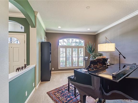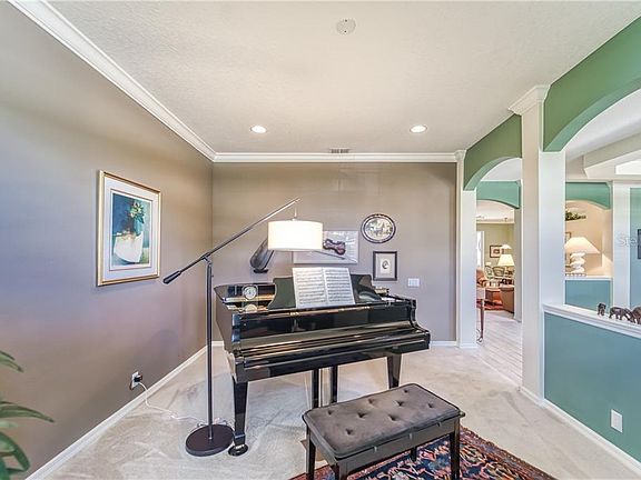 The one you've waited for is Now available in Carillon Lakes! Truly a Gorgeous Gem!! The moment you walk through the door you'll instantly know just how well this most sought after, Sago Model has been lovingly cared for. Prepare to be impressed by the custom touches the current homeowners have invested into making this home a cut above the rest! With nearly 2300 sf, this 3 bedroom, 2 bath PLUS a separate study/den is a true 3-way split floor plan. The 12' Sliding glass doors leading to the large, custom designed, fully screened lanai will immediately draw your eye to tranquil view of the beautifully landscaped, conservation lot. You'll Never have any backyard neighbors! Completing this ideal outdoor space is a true outdoor kitchen with a natural gas grill, sink and more! In addition to the family room, this home also has an elegant formal dining space with tray ceilings and custom lighting, and a separate formal living room. A professional interior designer has exquisitely created a pallet of warm and inviting colors throughout the home with attention given to every detail. 5" crown mouldings throughout all the living spaces add the perfect finishing touch. And there's more!..The kitchen has been upgraded with 42" solid wood cabinetry, with custom pull out shelving in each, solid surface counter tops, stainless steel appliances and gas range with 4 burners and center griddle. This home is also plumbed for both gas and electric for maximum energy efficiency. Wait until to you see the master suite..The large,sun lit room comfortably has space for a king bed and accompanying furniture..the extra large master bath has a dual vanity, separate garden tub and oversized walk in glass blocked shower. And that's not all!, the HUGE master closet has been custom designed by Carefree Closets of Lakeland. It's like having a completely separate room!! Carefree Closets also custom designed the perfect study with (movable) built in cabinets, custom lighting and executive style wall desks with loads of storage. NEW roof Dec 2019, water softner, custom mesh,light permeable, hurricane window panels, custom garage storage, floored attic, custom plantation shutters and some of the gorgeous furnishings are only a small part of this magnificent home! Schedule your private tour and prepare to be amazed!