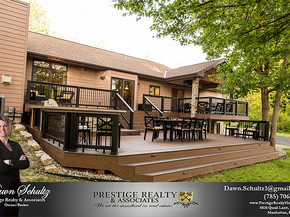 HIGH END HOME WITH ACREAGE ON A HEAVILY WOODED LOT, OVER-SIZED HEATED SHOP, IN ROCK CREEK SCHOOL DISTRICT MINUTES FROM MANHATTAN! 4 bed/3 bath with office, over 4100 sq.ft! Custom back deck includes outdoor kitchen, is partially covered and perfect for outdoor enthusiasts! Interior amenities include custom cabinets, granite, Brazilian cherry hardwood floors, stone fireplace in living room, wood burning stove in basement family room! Master suite includes his/her closets, private toilet and spacious tiled walk-in shower. Call Dawn Schultz w/ Prestige Realty 785-706-1426 to tour!