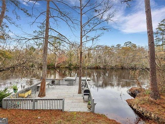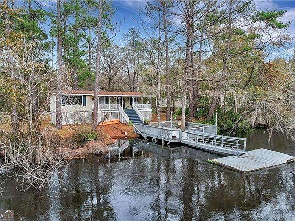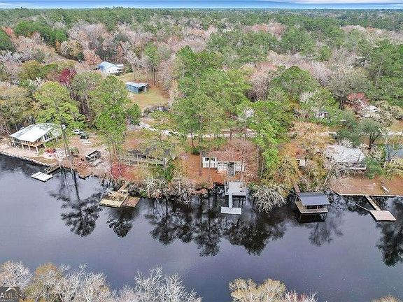 Welcome to this charming cabin nestled along the serene riverfront of the Satilla River, offering a tranquil retreat for nature enthusiasts and water lovers alike. This property boasts a private dock, directly on the Satilla river and endless opportunities for boating, fishing, and relaxation. With a short drive to small towns of either Woodbine, Folkston, Nahunta etc, this cabin provides the best of both worlds with a perfect balance of seclusion and convenience to shopping, groceries and restaurants. Cabin features huge porch overlooking the river, Living room with large window also overlooking the river and hardwood floors. Eat in kitchen offers plenty of cabinets and equipped with a Range and Refrigerator. Bedroom offers ensuite bathroom with tub/shower combo. Window A/C units. Heat is from electric Fireplace furniture. UTILITIES: OREMC Power Company, Septic Tank, Shared Well. Easy to show!